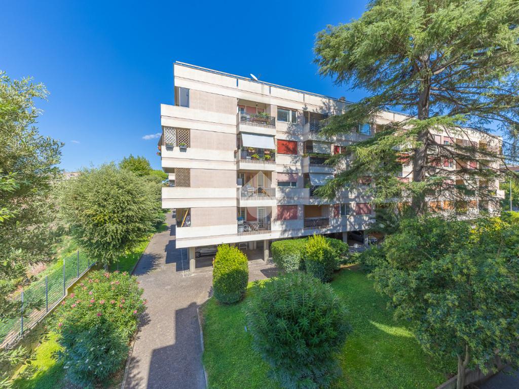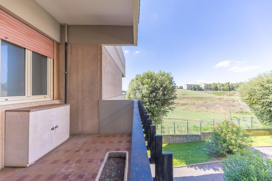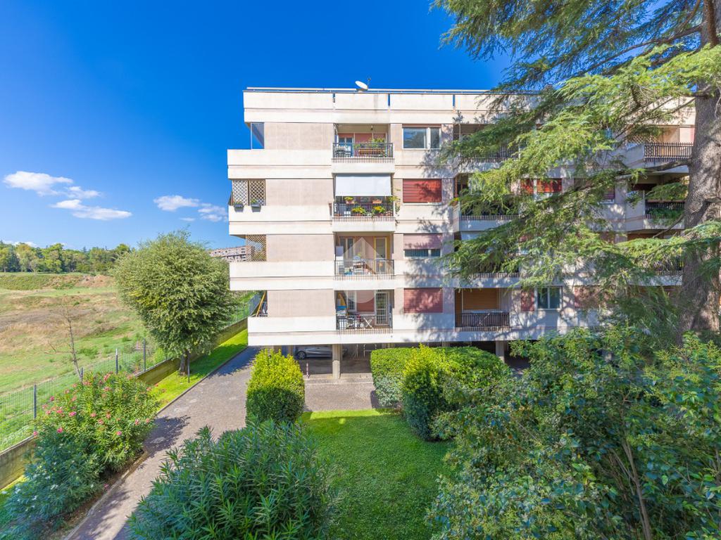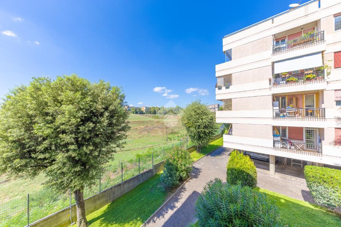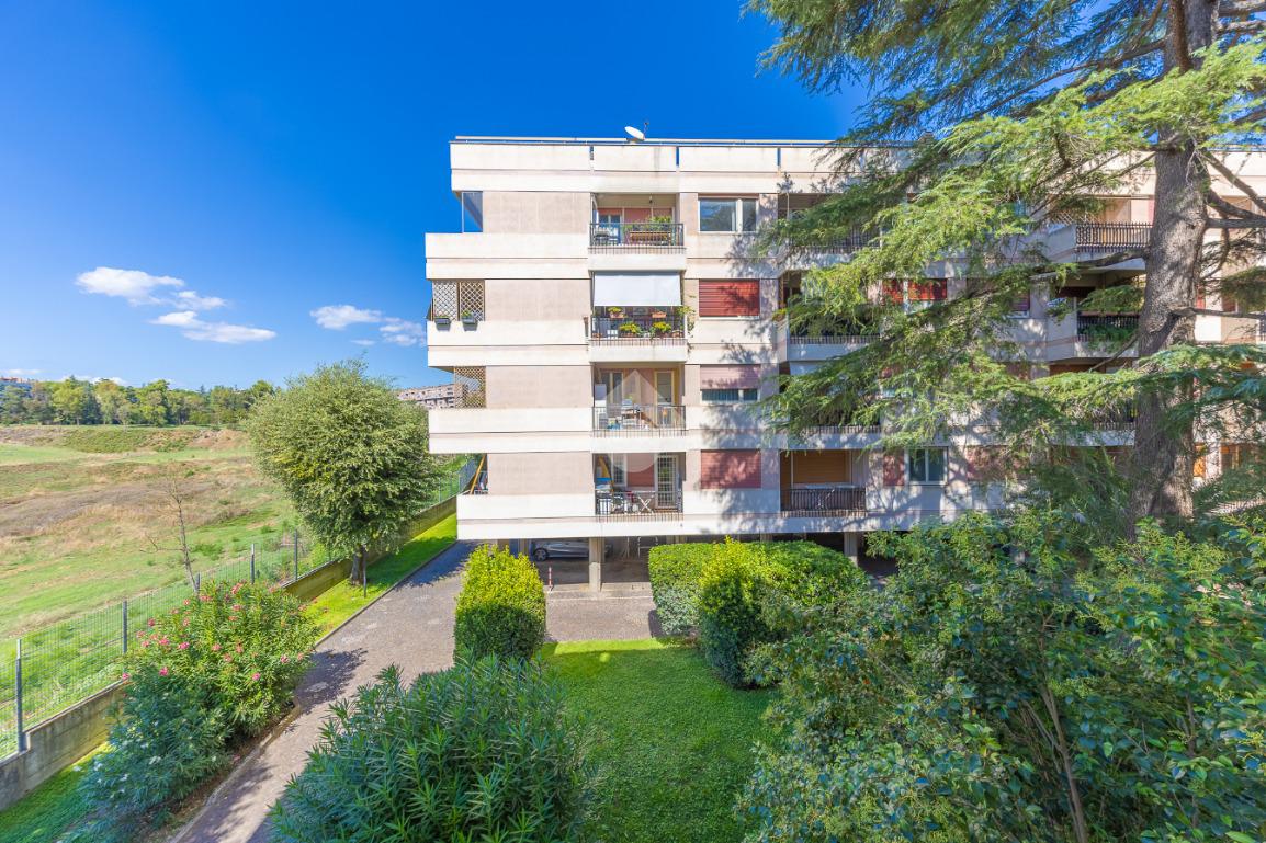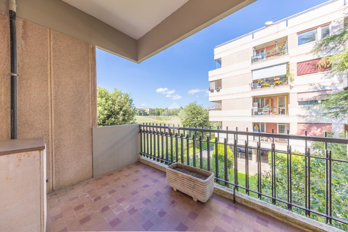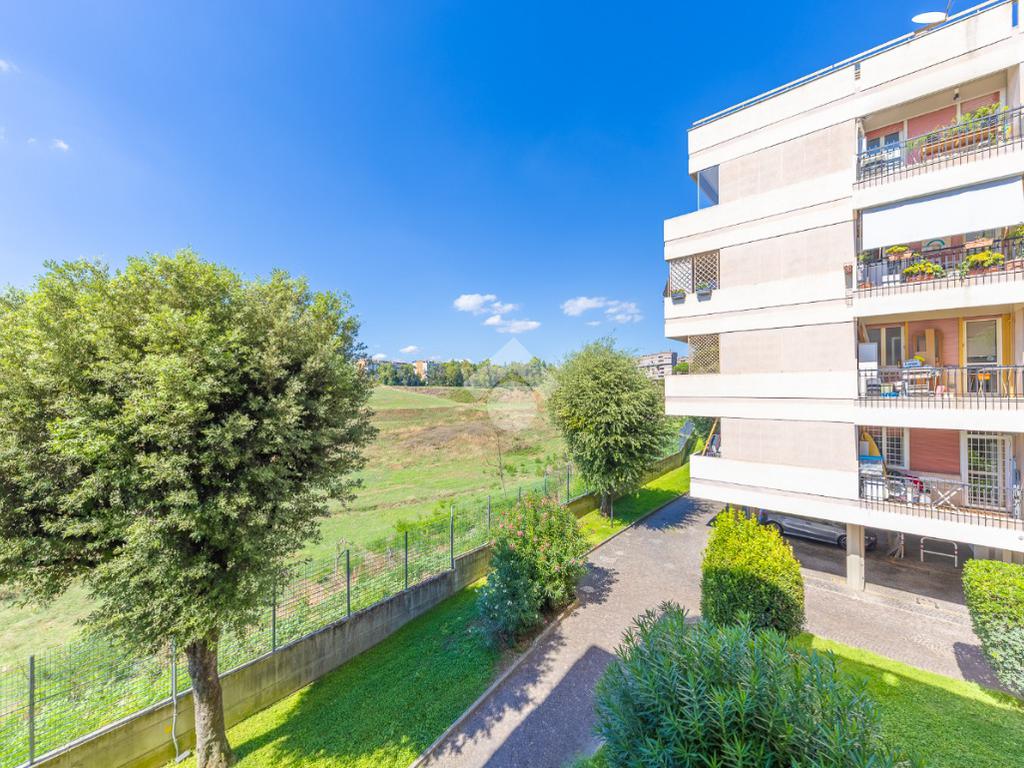 Proponiamo la vendita di un appartamento signorile di 95 mq, posto al secondo piano con ascensore in un elegante complesso residenziale immerso nel verde, con doppio servizio di portineria, aree verdi curate, parco giochi, campo da tennis, campo da calcetto, videosorveglianza H24 e recinzione con sensori anti-scavalcamento. L'appartamento si presenta come ampio bilocale ma grazie alla regolarità della planimetria è possibile modificare in modo semplice la divisione degli spazi interni in base alle singole esigenze abitative trasformandolo in un comodo trilocale. Allo stato attuale si presenta in buone condizioni interne composto da: un ingresso, uno spazioso salone, una cucina abitabile separata, un bagno finestrato con vasca, un corridoio soppalcato, una camera da letto matrimoniale, due terrazzi. I due terrazzi sono vivibili, uno affaccia sul parco garantendo una buona privacy e l'altro all'interno del comprensorio. Entrambi i terrazzi si prestano a diversi usi dalla collocazione di accessori alla possibilità di impiego per colazioni o cene.
