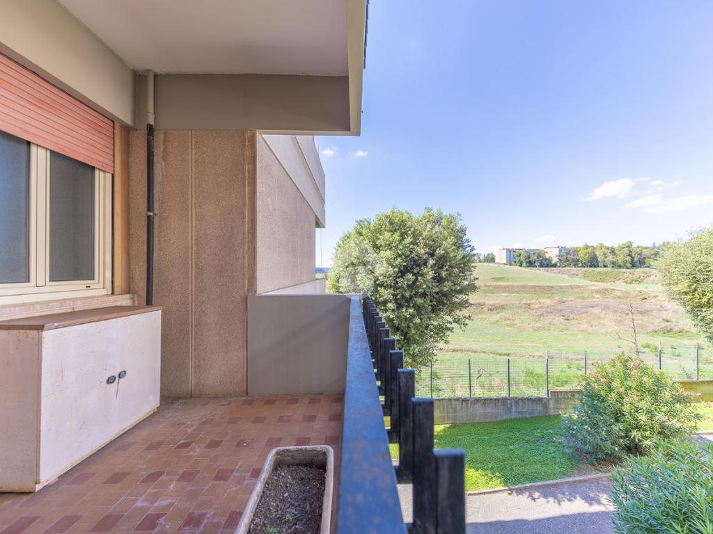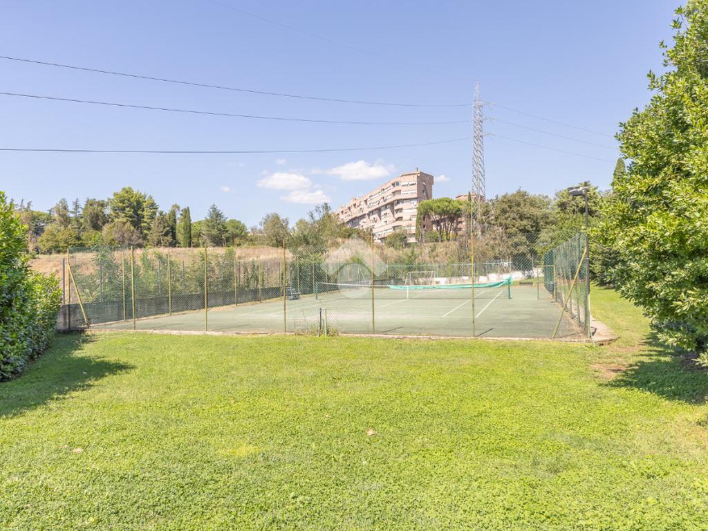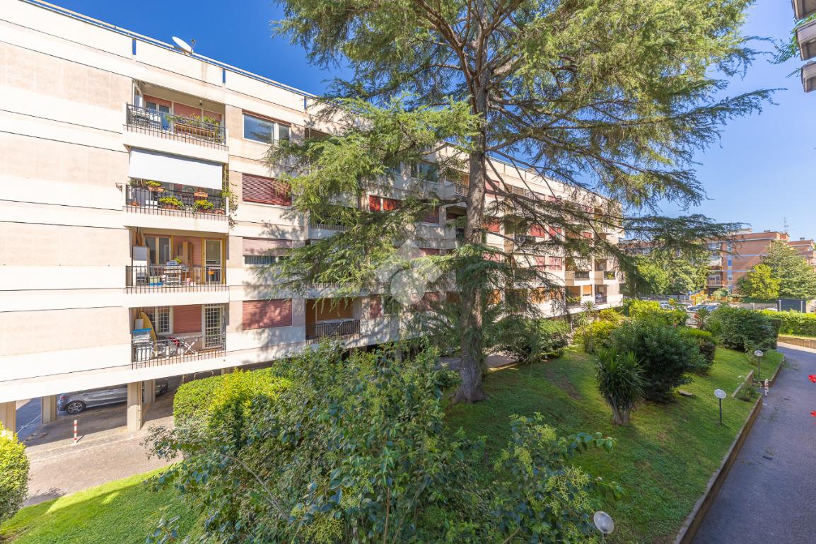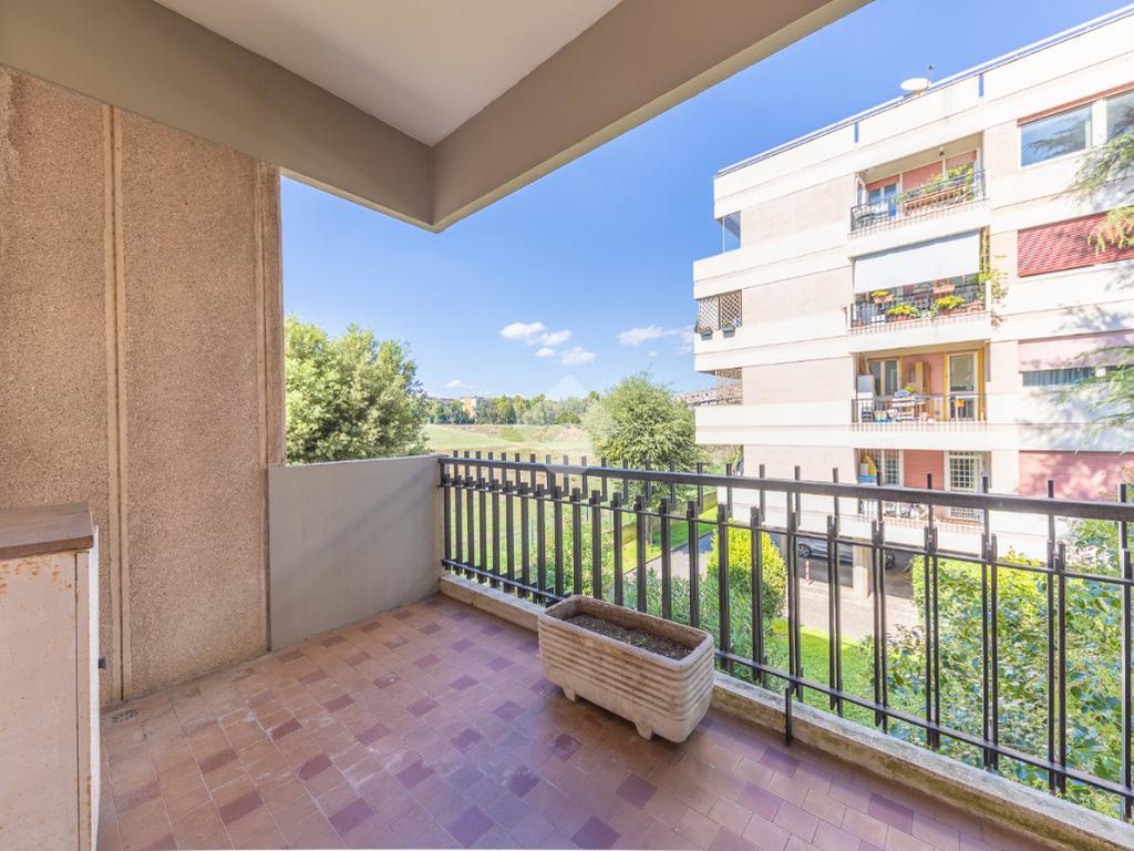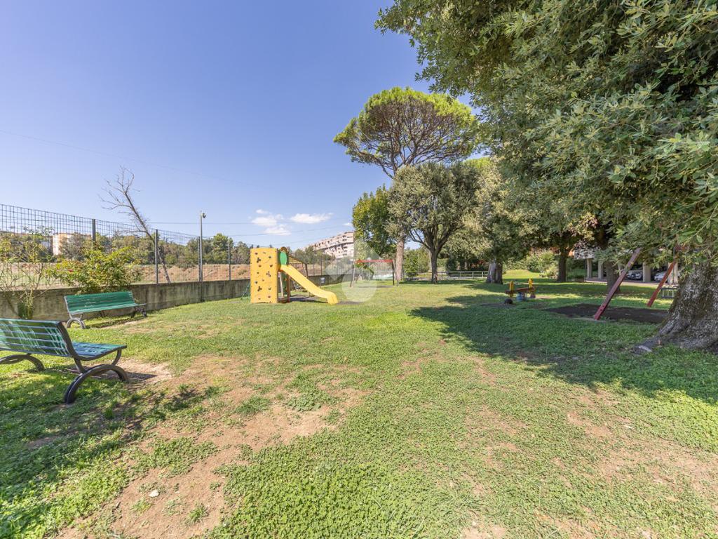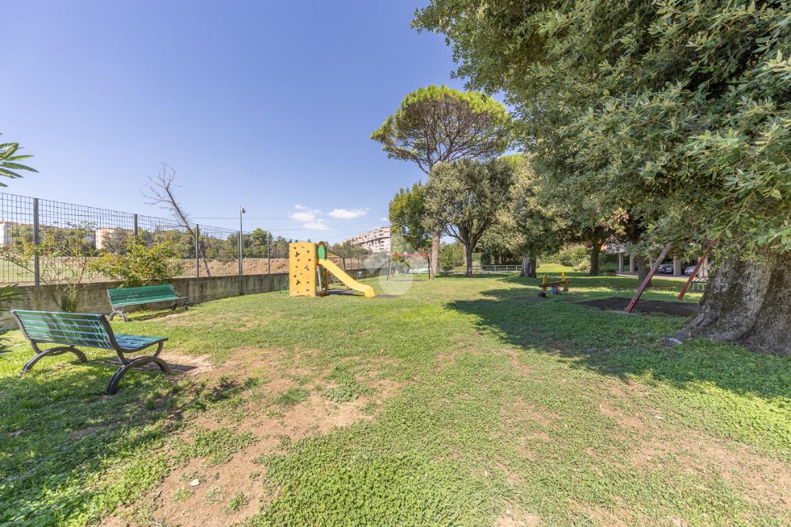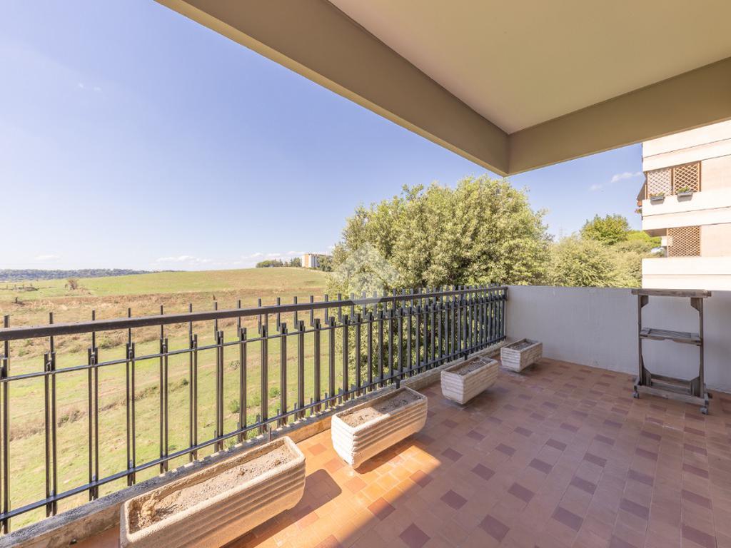 Proponiamo la vendita di un appartamento signorile di 95 mq, posto al secondo piano con ascensore in un elegante complesso residenziale immerso nel verde, con doppio servizio di portineria, aree verdi curate, parco giochi, campo da tennis, campo da calcetto, videosorveglianza H24 e recinzione con sensori anti-scavalcamento. L'appartamento si presenta come ampio bilocale ma grazie alla regolarità della planimetria è possibile modificare in modo semplice la divisione degli spazi interni in base alle singole esigenze abitative trasformandolo in un comodo trilocale. Allo stato attuale si presenta in buone condizioni interne composto da: un ingresso, uno spazioso salone, una cucina abitabile separata, un bagno finestrato con vasca, un corridoio soppalcato, una camera da letto matrimoniale, due terrazzi. I due terrazzi sono vivibili, uno affaccia sul parco garantendo una buona privacy e l'altro all'interno del comprensorio. Entrambi i terrazzi si prestano a diversi usi dalla collocazione di accessori alla possibilità di impiego per colazioni o cene.