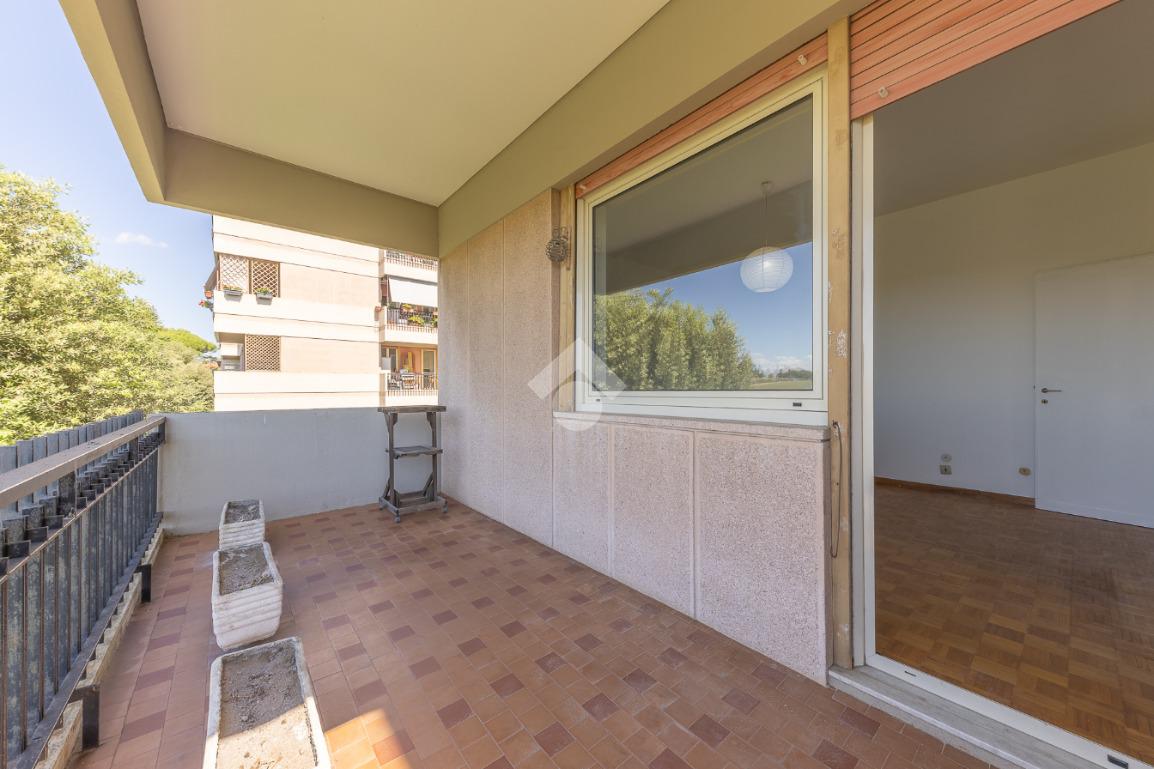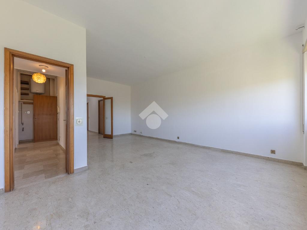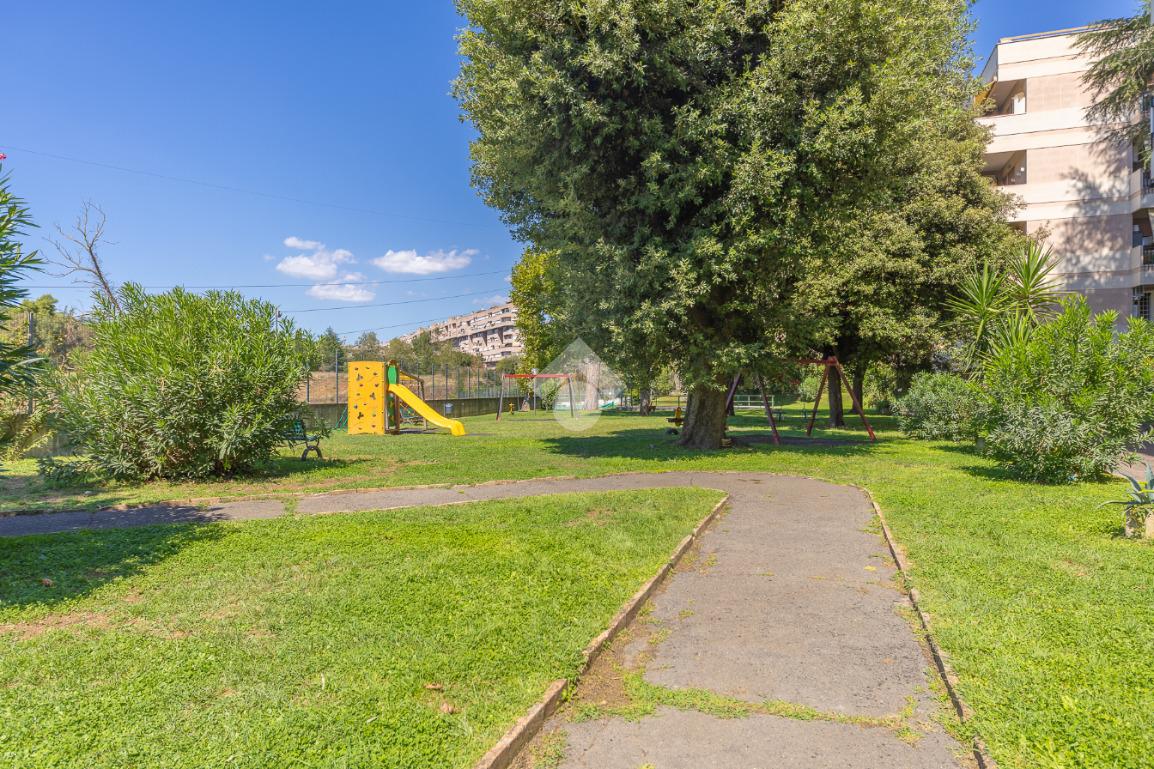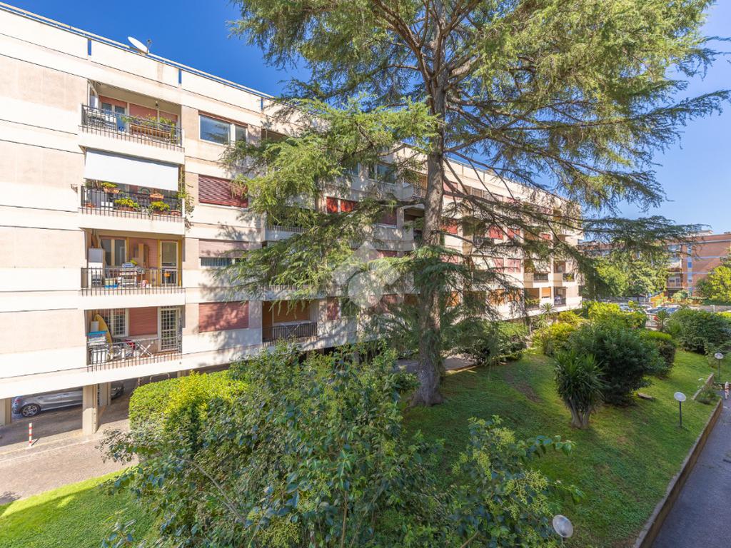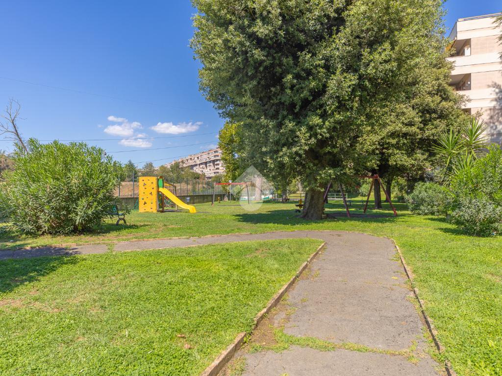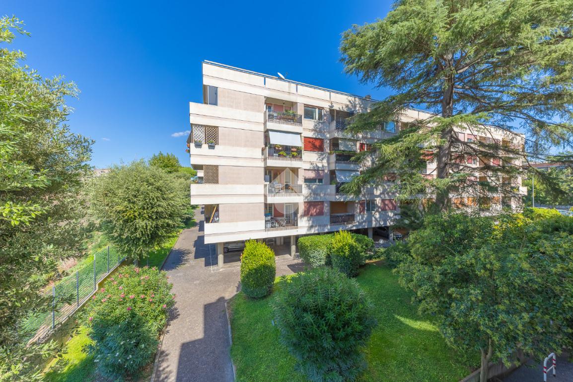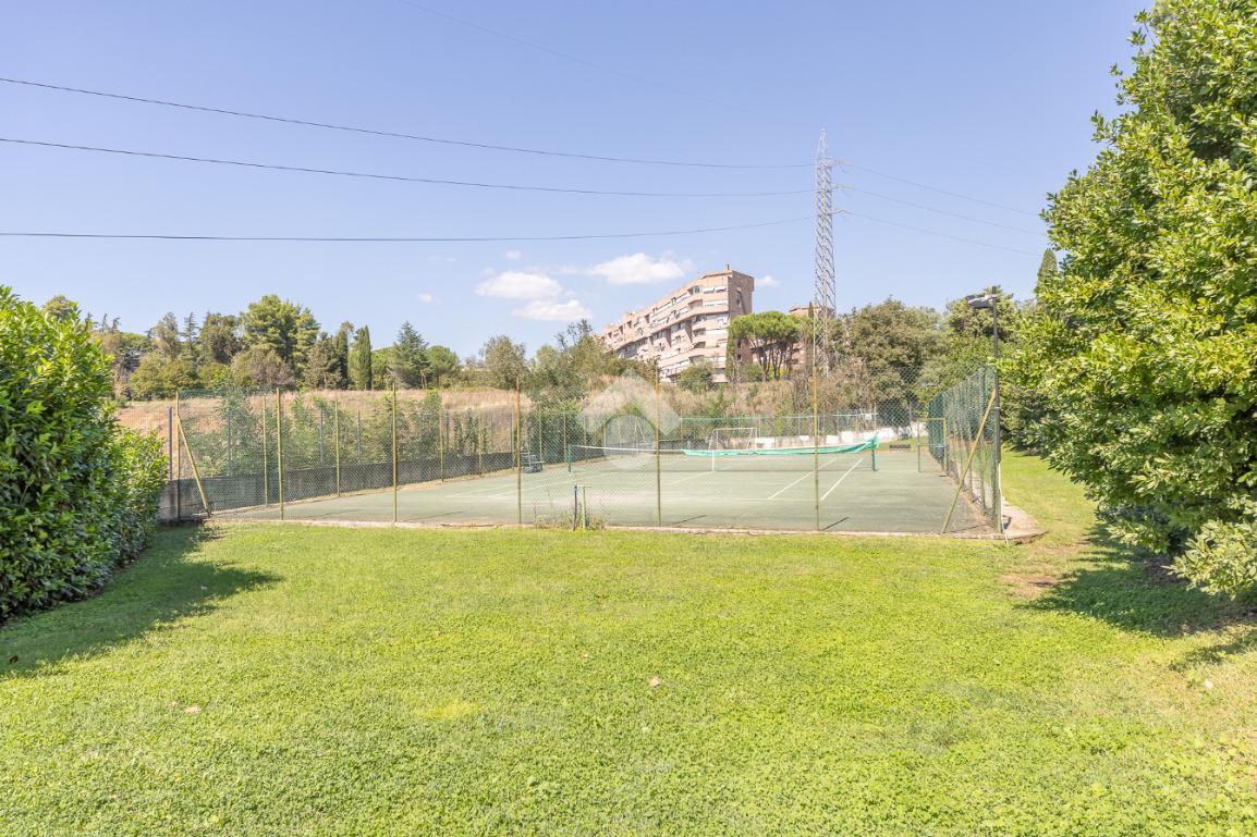 Proponiamo la vendita di un appartamento signorile di 95 mq, posto al secondo piano con ascensore in un elegante complesso residenziale immerso nel verde, con doppio servizio di portineria, aree verdi curate, parco giochi, campo da tennis, campo da calcetto, videosorveglianza H24 e recinzione con sensori anti-scavalcamento. L'appartamento si presenta come ampio bilocale ma grazie alla regolarità della planimetria è possibile modificare in modo semplice la divisione degli spazi interni in base alle singole esigenze abitative trasformandolo in un comodo trilocale. Allo stato attuale si presenta in buone condizioni interne composto da: un ingresso, uno spazioso salone, una cucina abitabile separata, un bagno finestrato con vasca, un corridoio soppalcato, una camera da letto matrimoniale, due terrazzi. I due terrazzi sono vivibili, uno affaccia sul parco garantendo una buona privacy e l'altro all'interno del comprensorio. Entrambi i terrazzi si prestano a diversi usi dalla collocazione di accessori alla possibilità di impiego per colazioni o cene.