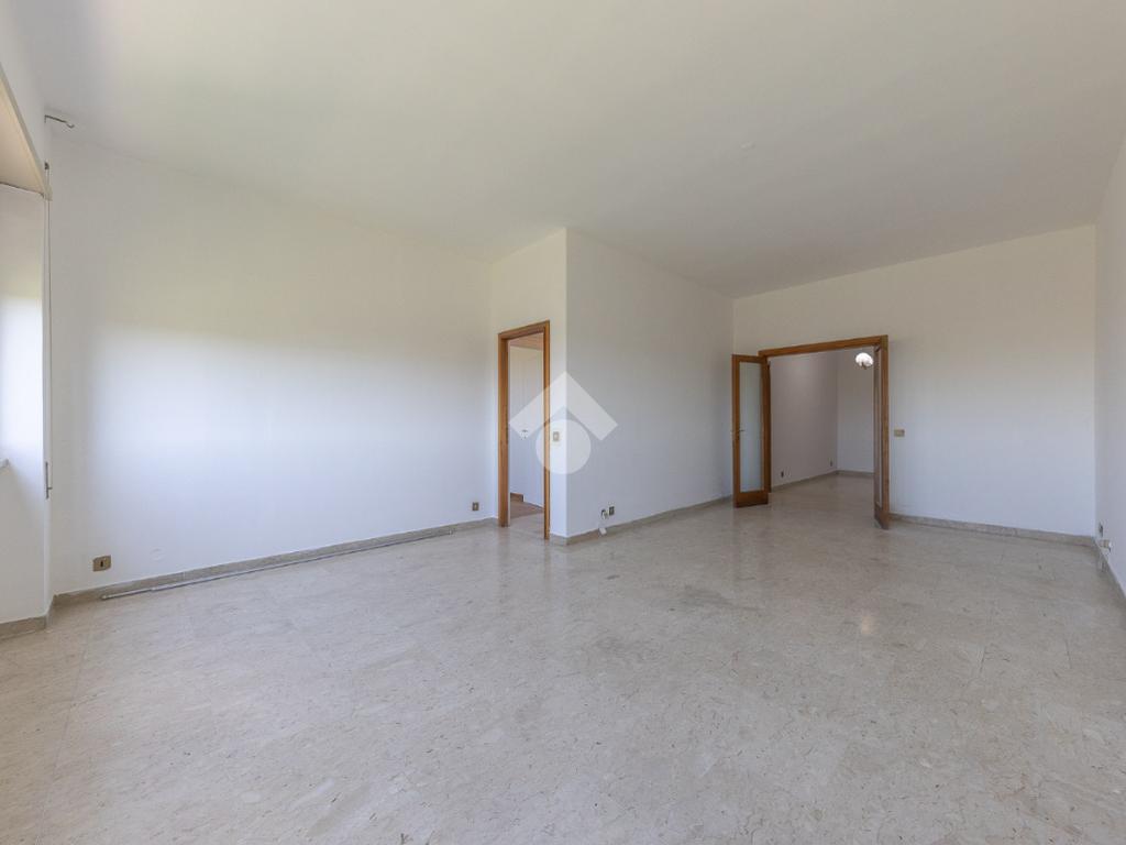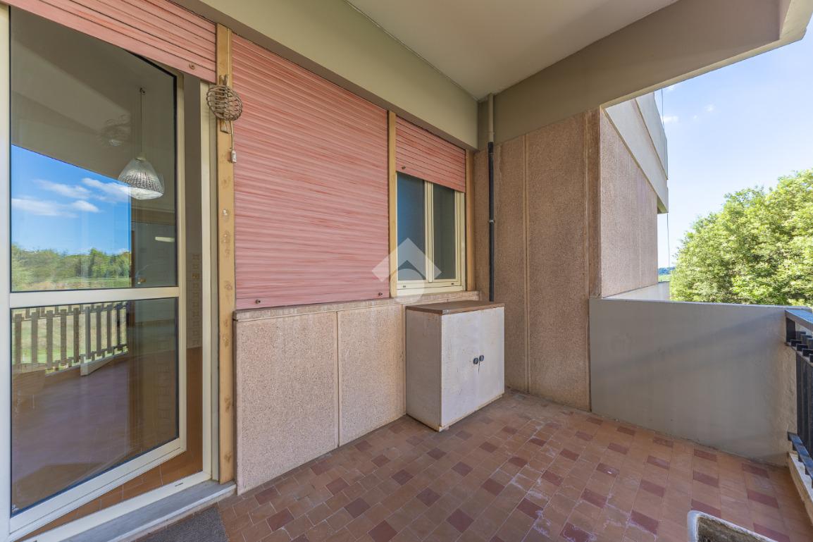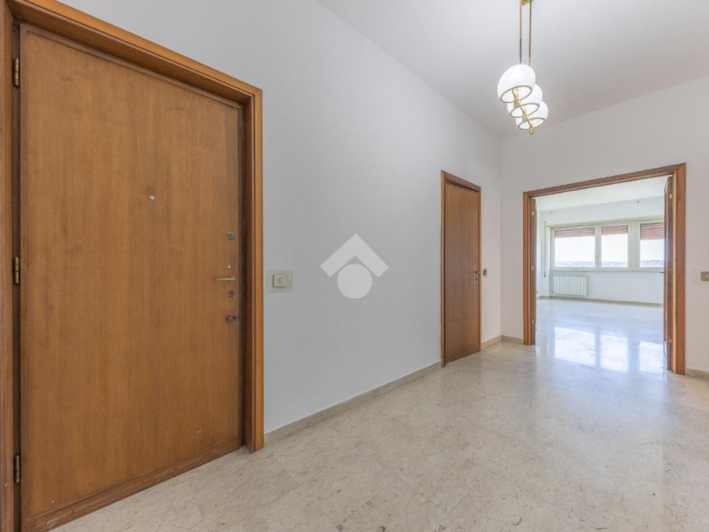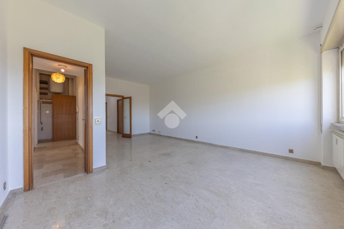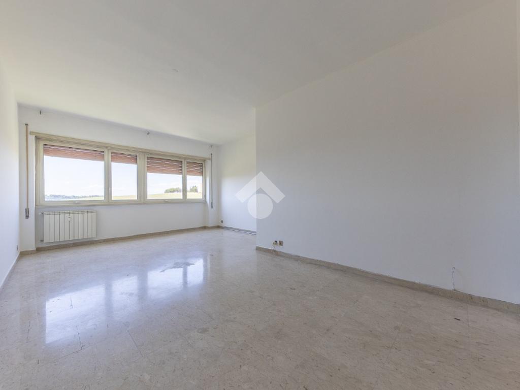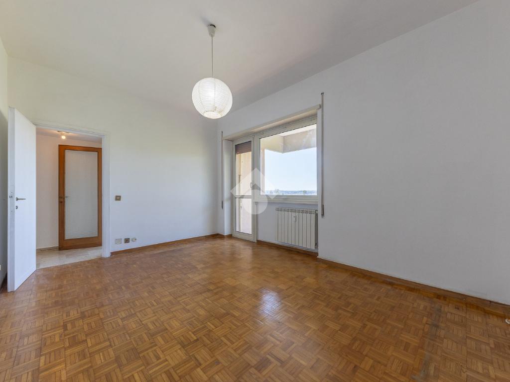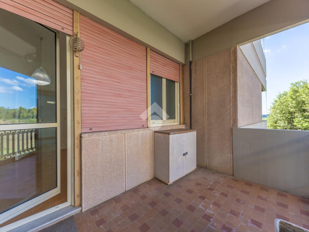 Proponiamo la vendita di un appartamento signorile di 95 mq, posto al secondo piano con ascensore in un elegante complesso residenziale immerso nel verde, con doppio servizio di portineria, aree verdi curate, parco giochi, campo da tennis, campo da calcetto, videosorveglianza H24 e recinzione con sensori anti-scavalcamento. L'appartamento si presenta come ampio bilocale ma grazie alla regolarità della planimetria è possibile modificare in modo semplice la divisione degli spazi interni in base alle singole esigenze abitative trasformandolo in un comodo trilocale. Allo stato attuale si presenta in buone condizioni interne composto da: un ingresso, uno spazioso salone, una cucina abitabile separata, un bagno finestrato con vasca, un corridoio soppalcato, una camera da letto matrimoniale, due terrazzi. I due terrazzi sono vivibili, uno affaccia sul parco garantendo una buona privacy e l'altro all'interno del comprensorio. Entrambi i terrazzi si prestano a diversi usi dalla collocazione di accessori alla possibilità di impiego per colazioni o cene.