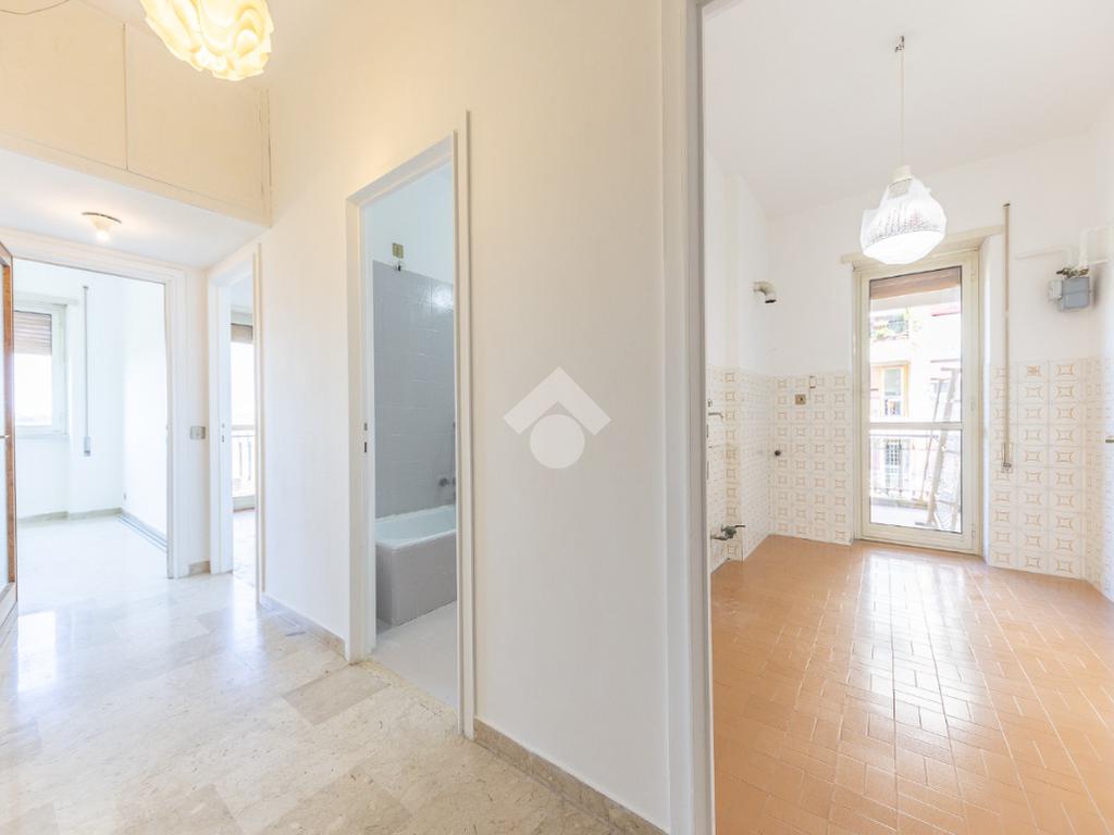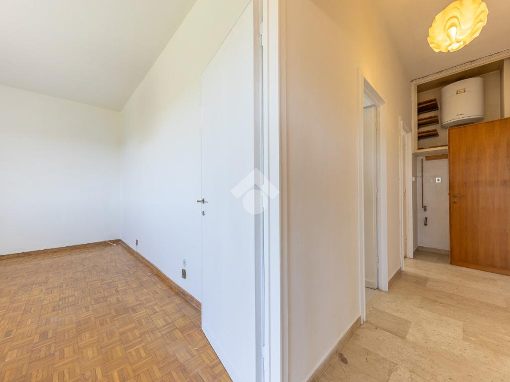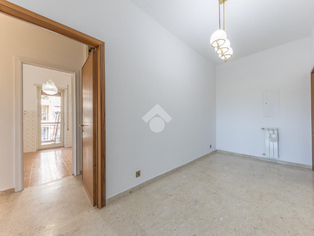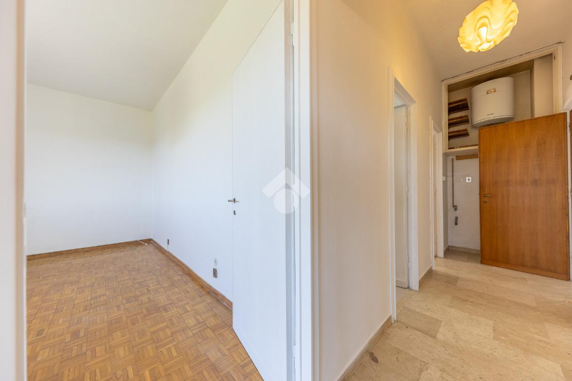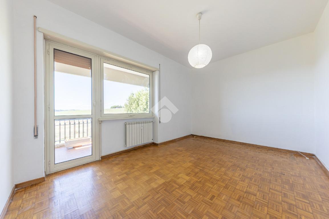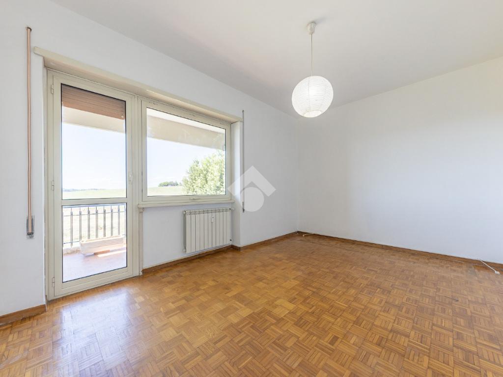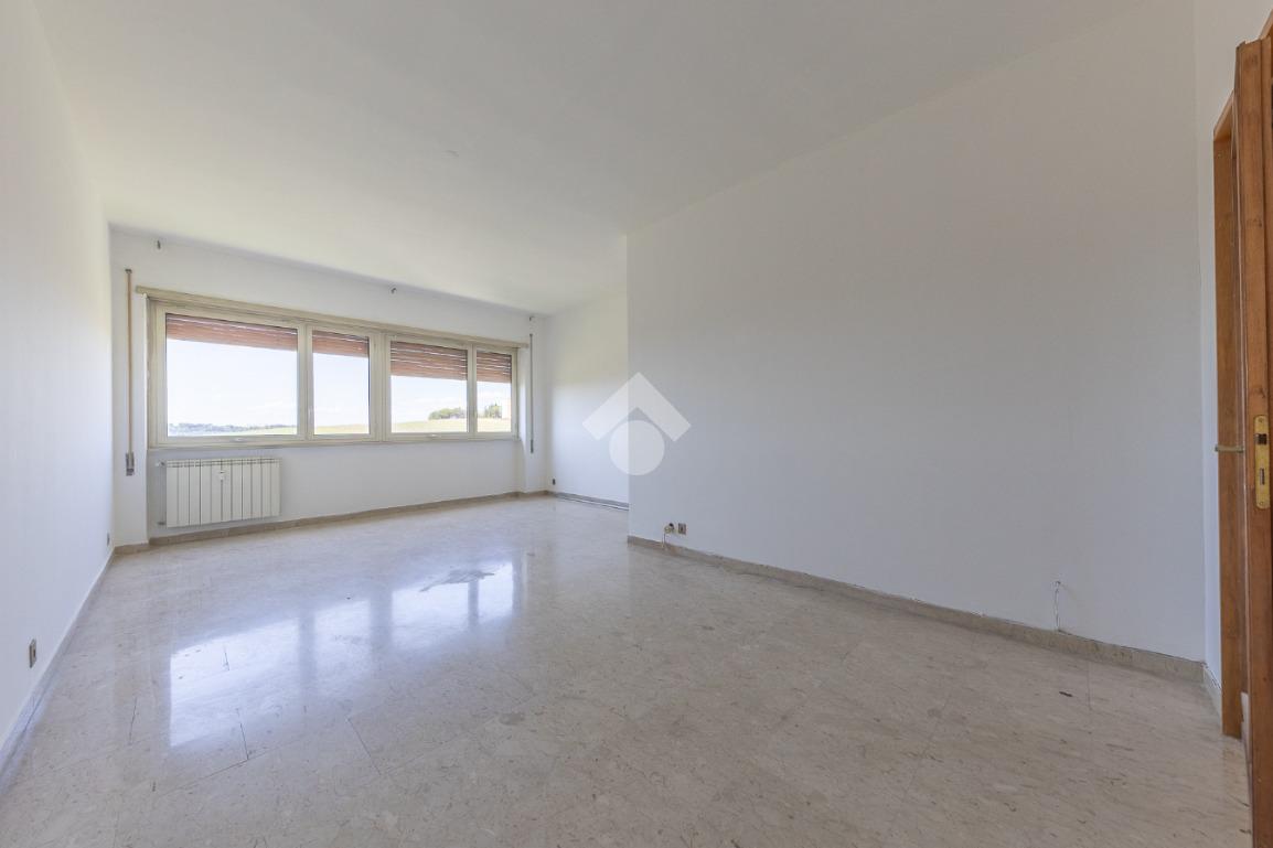 Proponiamo la vendita di un appartamento signorile di 95 mq, posto al secondo piano con ascensore in un elegante complesso residenziale immerso nel verde, con doppio servizio di portineria, aree verdi curate, parco giochi, campo da tennis, campo da calcetto, videosorveglianza H24 e recinzione con sensori anti-scavalcamento. L'appartamento si presenta come ampio bilocale ma grazie alla regolarità della planimetria è possibile modificare in modo semplice la divisione degli spazi interni in base alle singole esigenze abitative trasformandolo in un comodo trilocale. Allo stato attuale si presenta in buone condizioni interne composto da: un ingresso, uno spazioso salone, una cucina abitabile separata, un bagno finestrato con vasca, un corridoio soppalcato, una camera da letto matrimoniale, due terrazzi. I due terrazzi sono vivibili, uno affaccia sul parco garantendo una buona privacy e l'altro all'interno del comprensorio. Entrambi i terrazzi si prestano a diversi usi dalla collocazione di accessori alla possibilità di impiego per colazioni o cene.