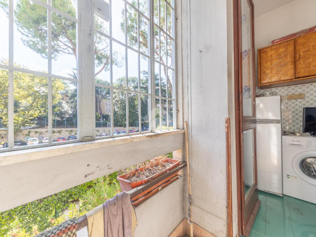 L'immobile, si presenta allo stato originale ed è composto da un'ampia zona giorno luminosa con accesso al primo balcone il quale affaccia all'interno delle zone verdi del condominio, questa caratteristica permette all'appartamento di essere silenzioso e riservato, cucina abitabile separata dai cui si accede al secondo balcone dell'appartamento.
