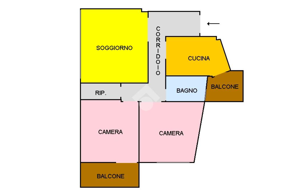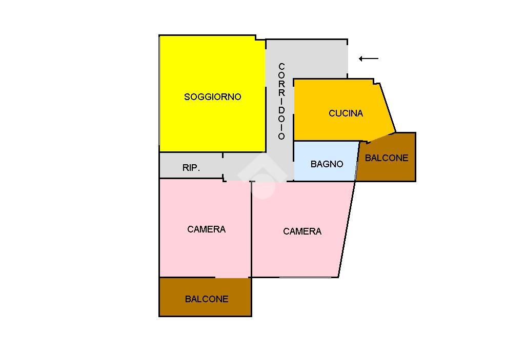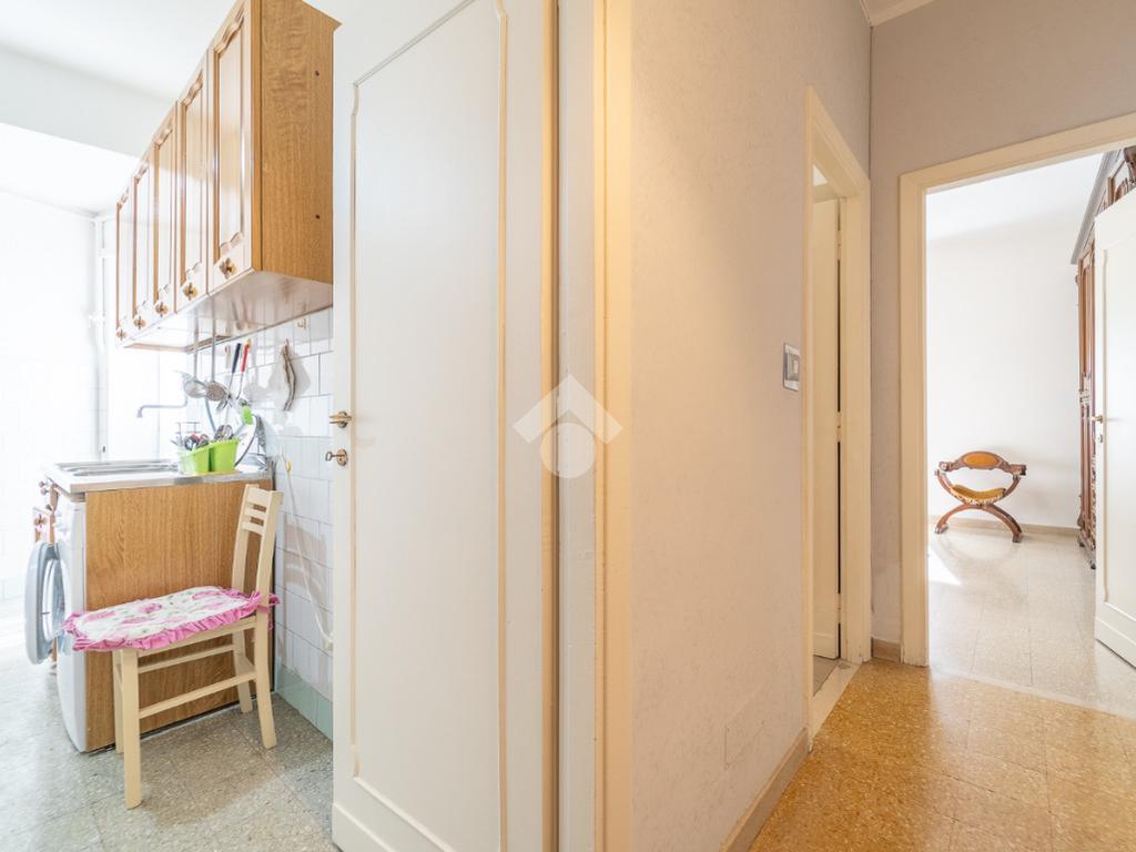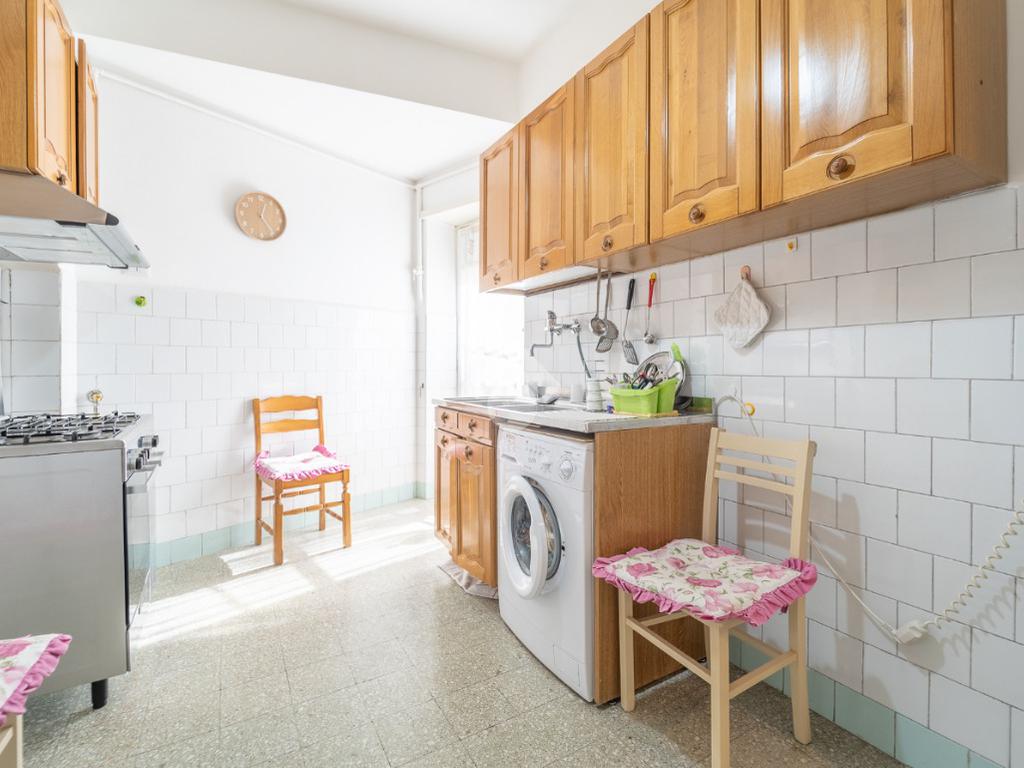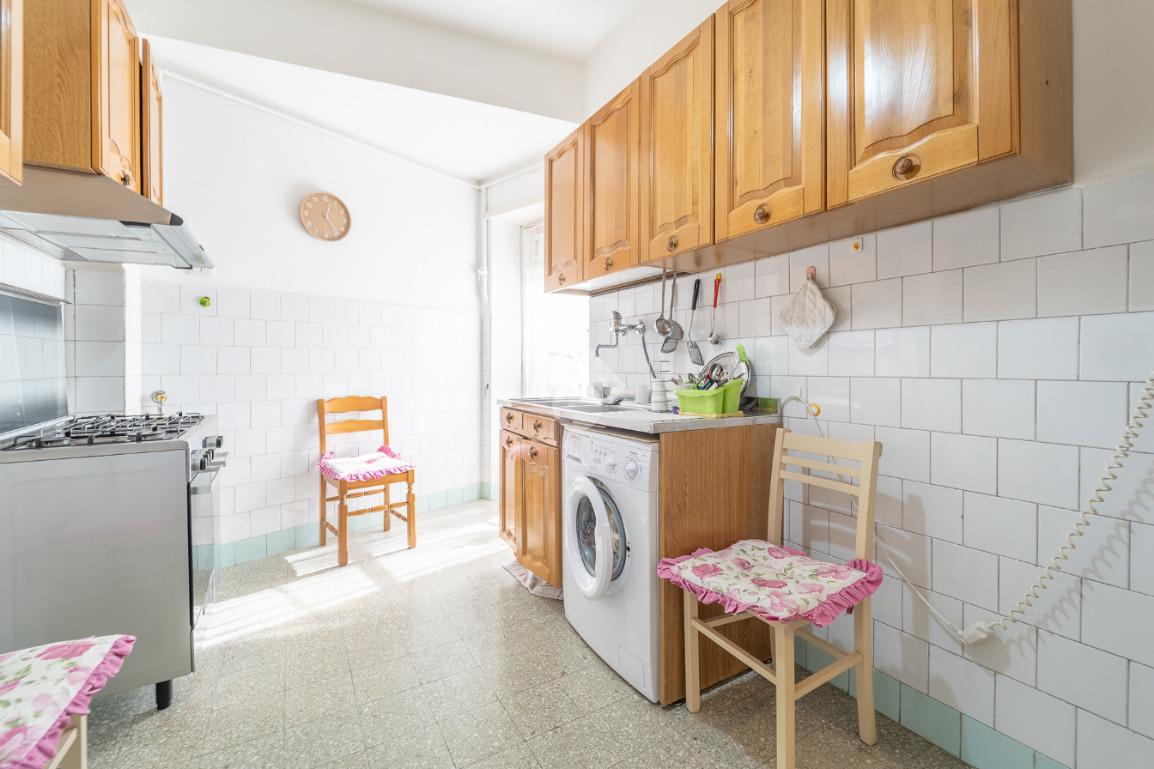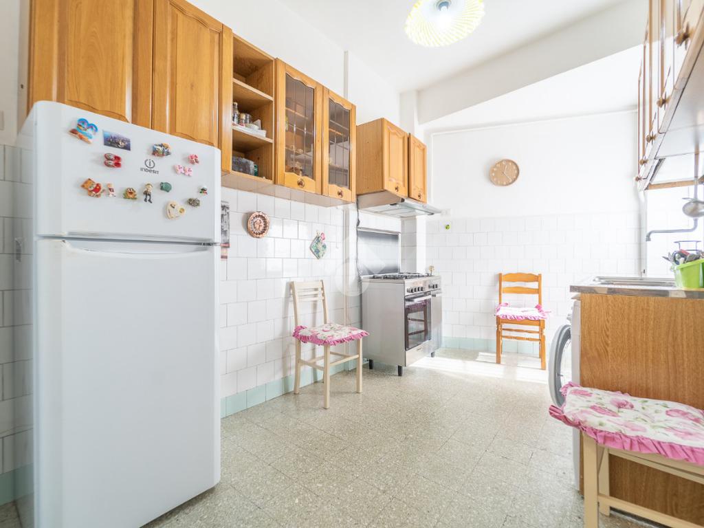 L'immobile, si presenta internamente allo stato originale ad eccezione dell’impianto elettrico rifatto circa una decina di anni fa, ed è composto: nella zona giorno dall'ingresso da cui si accede ad un luminoso salone e dalla cucina abitabile che ha l'accesso al primo balcone della proprietà. Grazie ad un comodo corridoio entriamo nella zona notte, composta da due ampie camere da letto di cui una con accesso al secondo balcone, un ripostiglio ed un bagno finestrato con vasca.