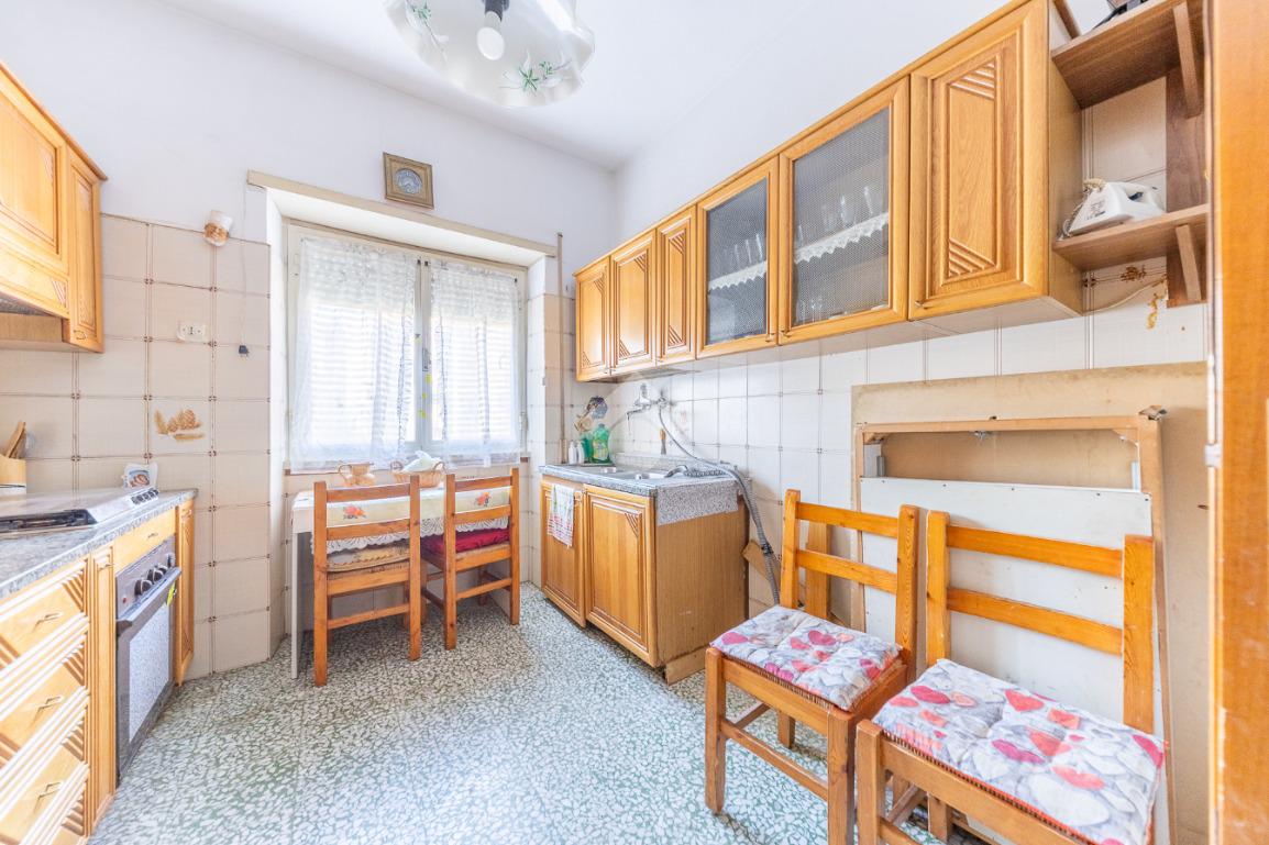 L'immobile si presenta internamente in buone condizioni nonostante lo stato originario e si sviluppa nella zona giorno dall'ingresso da cui si accede ad un luminoso salone. Proseguendo lungo il corridoio troviamo un’ampia cucina abitabile. L’immobile presenta tre ampie camere da letto matrimoniali di cui due con balconi privati e un bagno finestrato con box doccia.